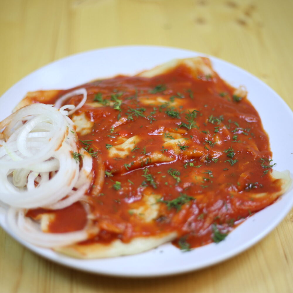 $18.00Thin dough roll filled with julienne potatoes and onions topped with house-made tomato sauce